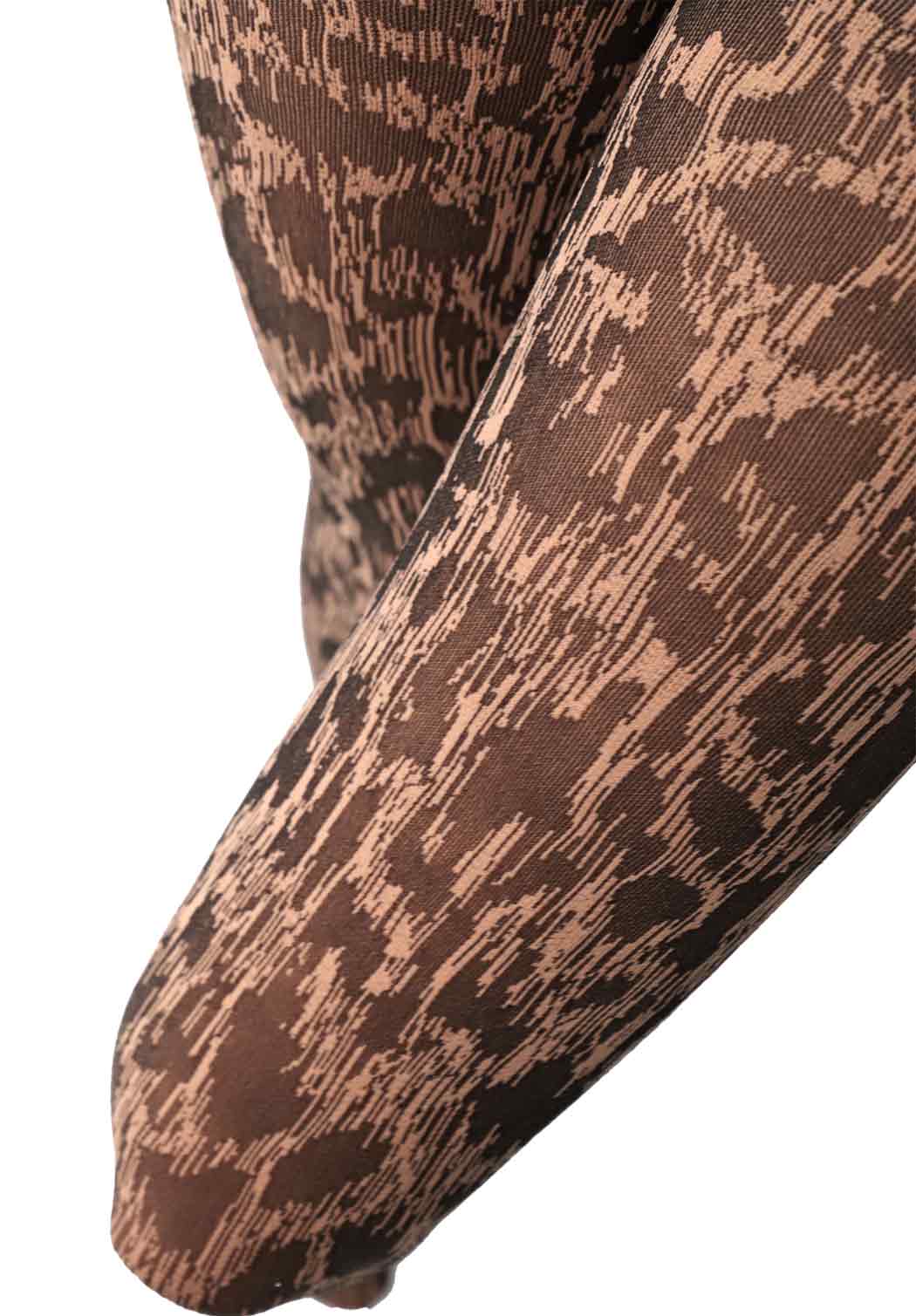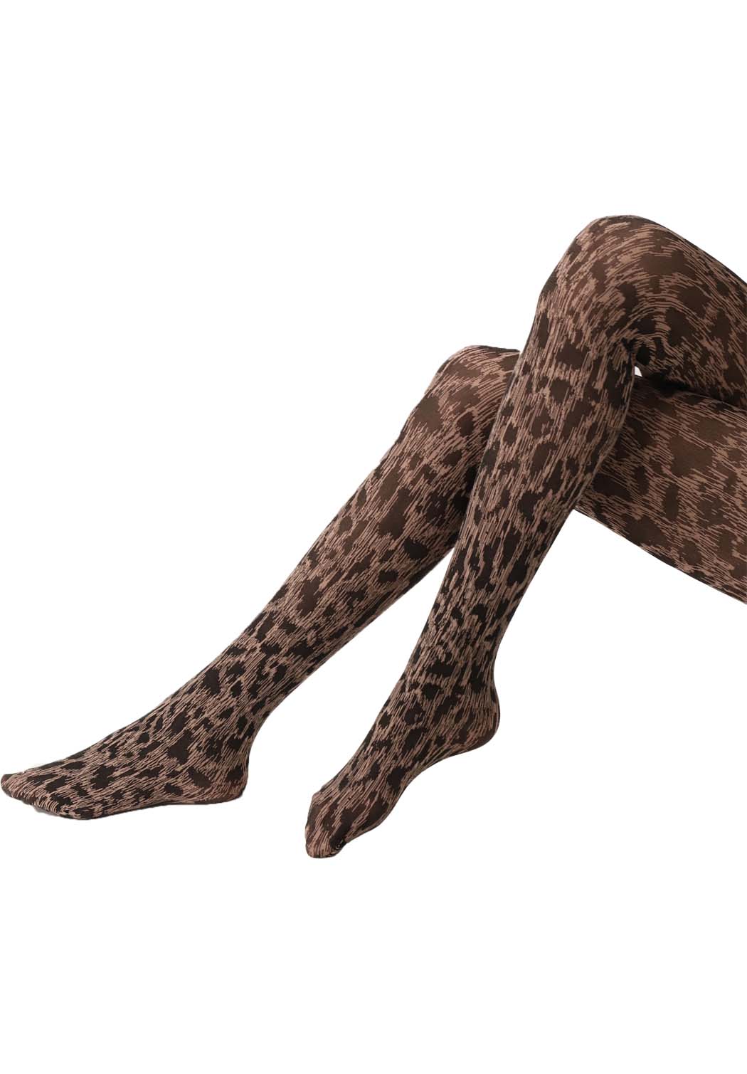 - 60 DEN semi-blickdicht: Volle Abdeckung und angenehme Wärme. Die Beine wirken gleichmäßig und gepflegt, während das Leopardenmuster in seiner vollen Farbintensität zur Geltung kommt.