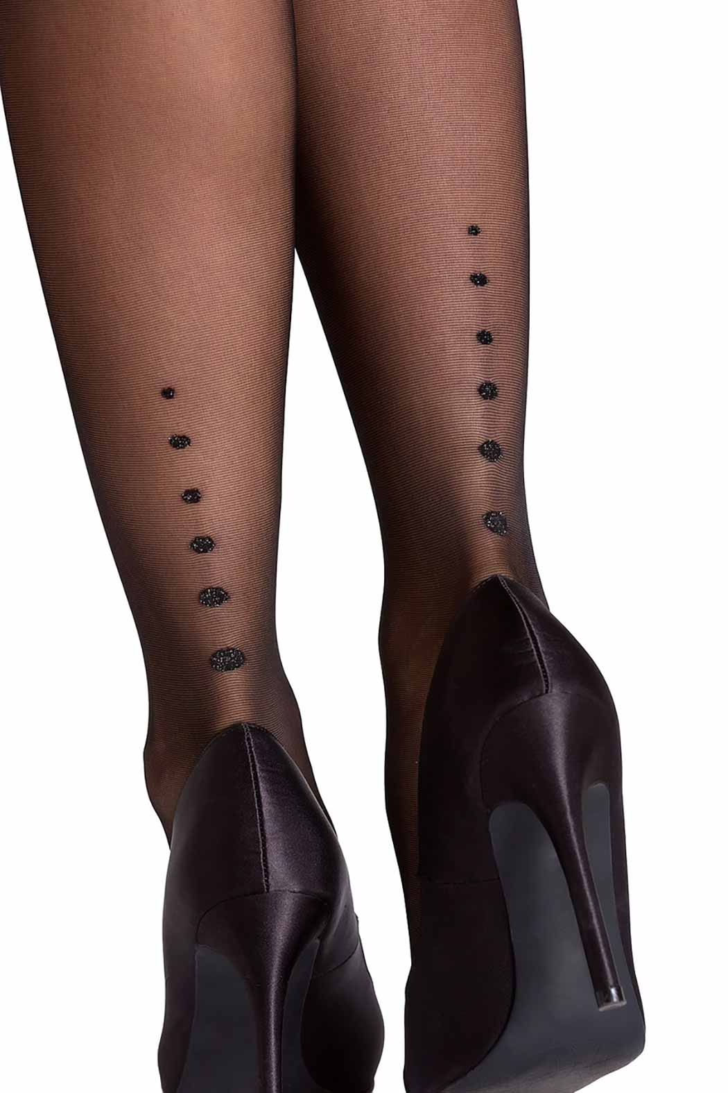 - on a background of black tights, the dots subtly glittering with brocade thread.