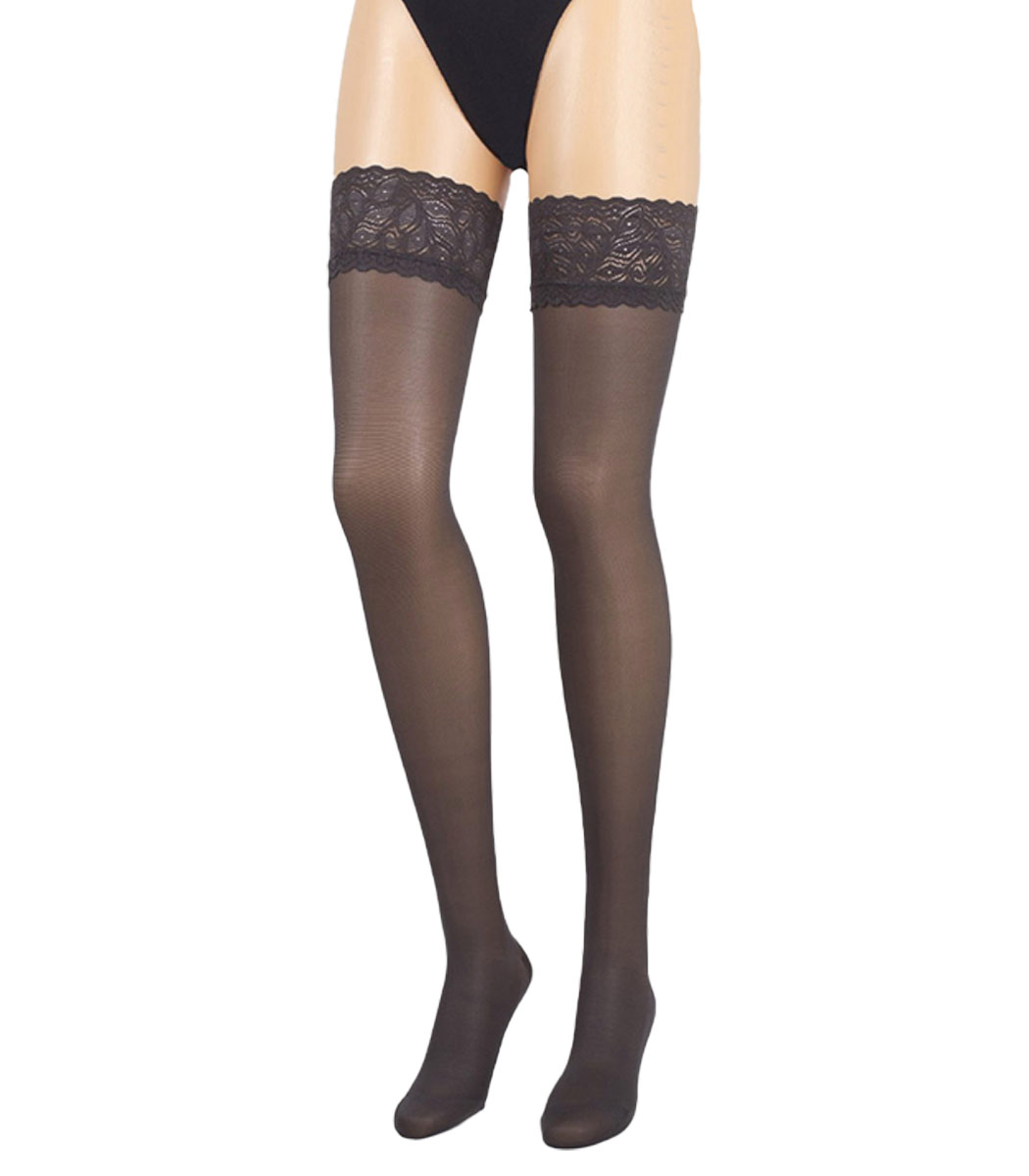 - Compression stockings: Thigh-high compression stockings in hold-up and suspender formats. Targeted leg support without a waistband.