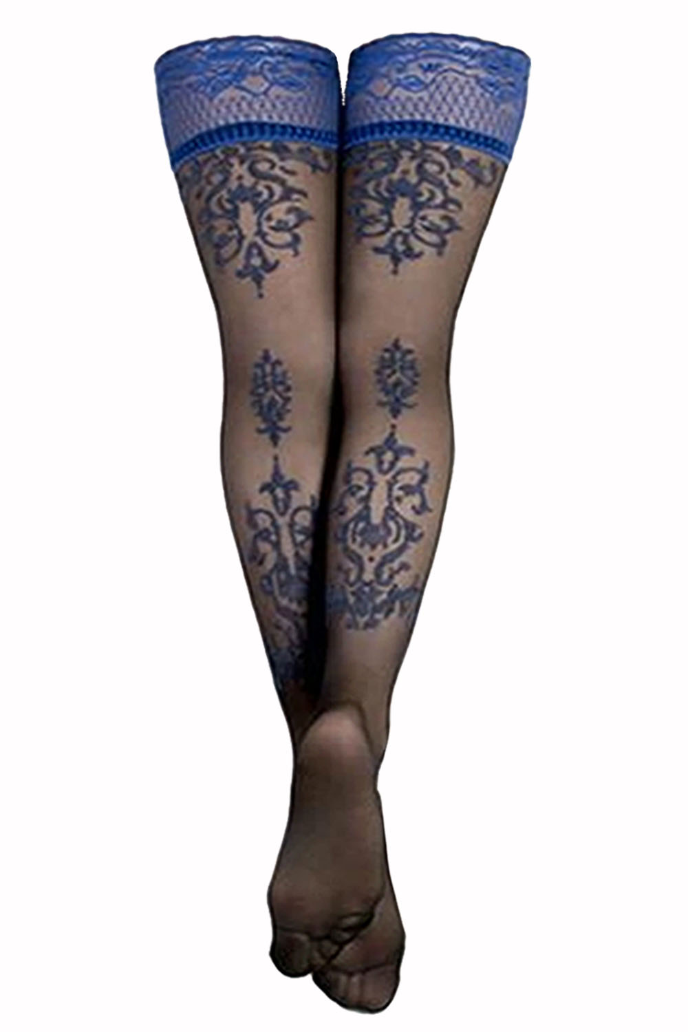 - Patterned stockings: Stockings with designs that extend beyond the top band into the leg itself – back seams, ankle motifs and all-over patterns in sheer and semi-opaque weights.